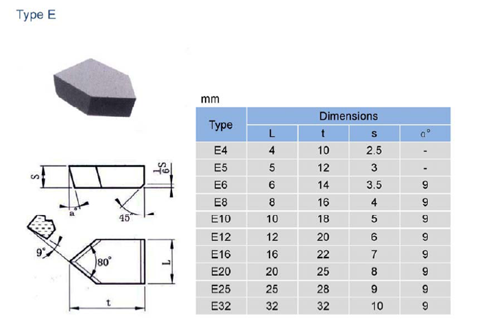 切削条件:根据需要切削的条件选择硬质合金刀片的形状、角度、刃型等。